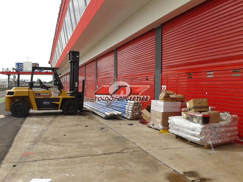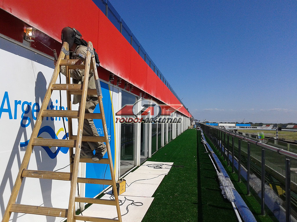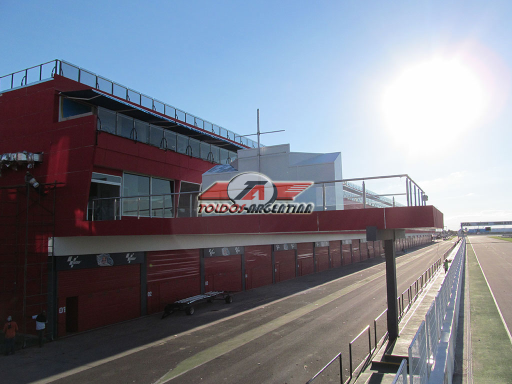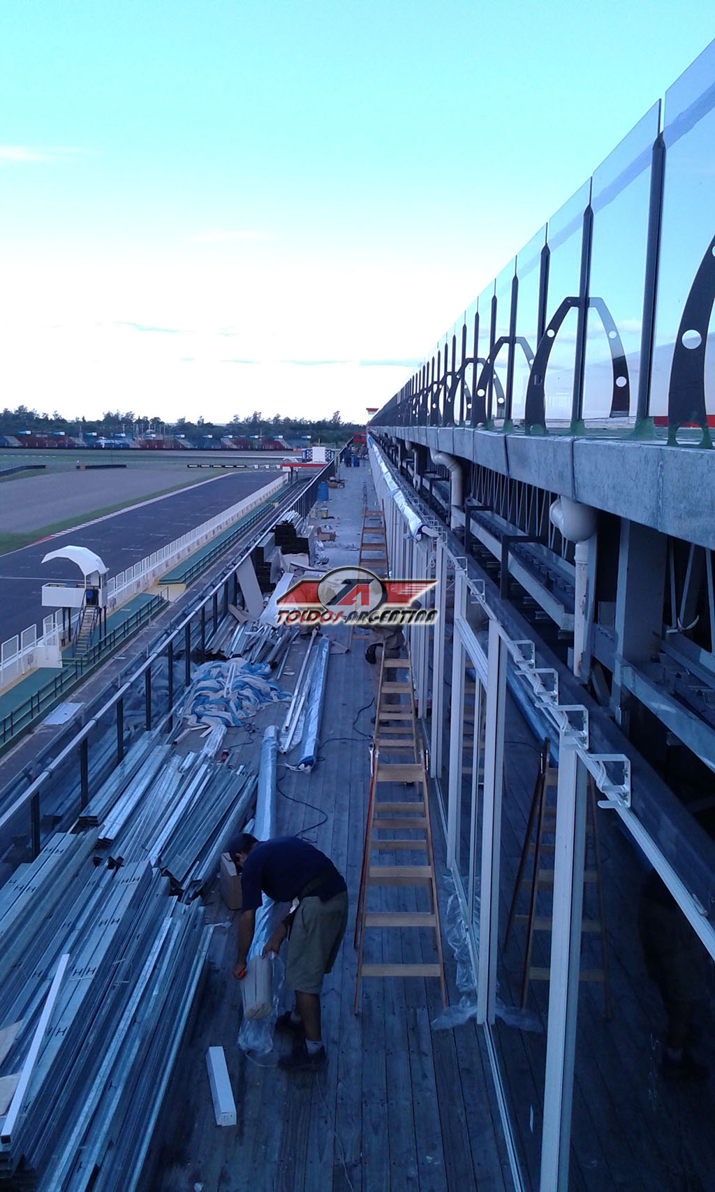 Se fabricarón 37 toldos de 7x3.10 metros c/u sobre el secto de Paddock/Palcos, generando un espacio de 837 mts2, en el último Moto GP 2015, miles de personas disfrutaron de la carrera en un lugar privilegiado al resguardo del sol.
