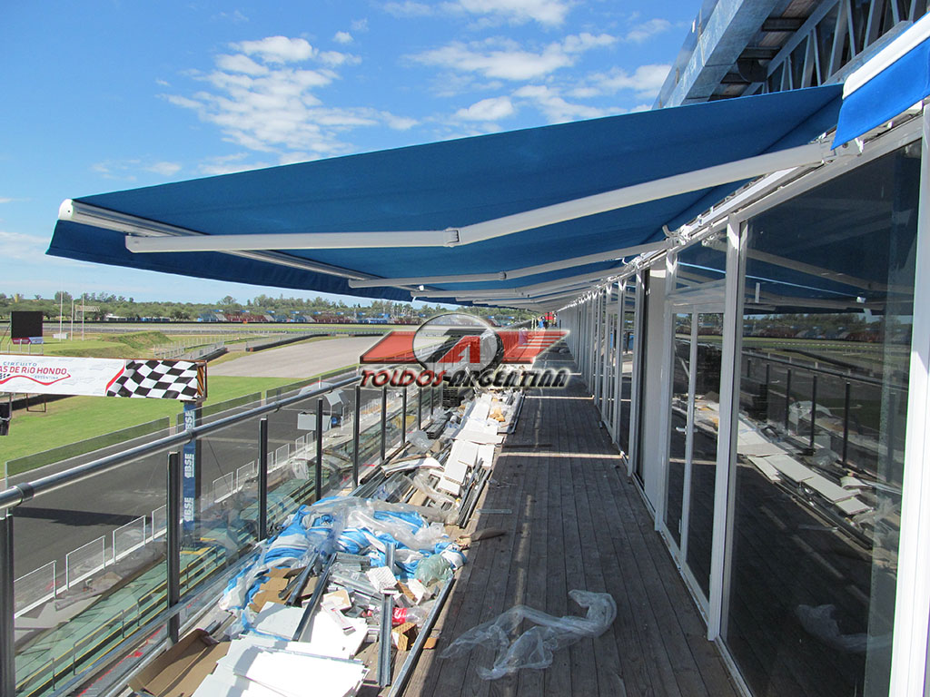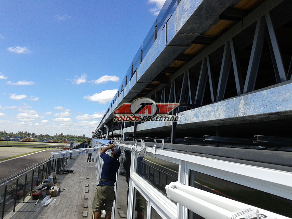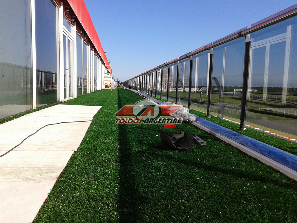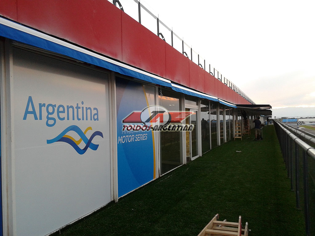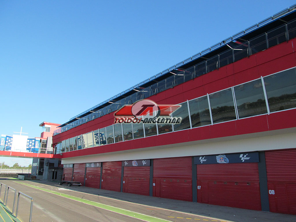 Se fabricarón 37 toldos de 7x3.10 metros c/u sobre el secto de Paddock/Palcos, generando un espacio de 837 mts2, en el último Moto GP 2015, miles de personas disfrutaron de la carrera en un lugar privilegiado al resguardo del sol.