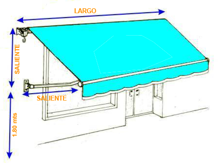 Sin embargo, este tipo de toldos, se presentan con salientes de hasta 1.80mts, pero hay que tener en cuenta que la altura de instalación recomendada para esta saliente máxima, es de casi 4 metros.